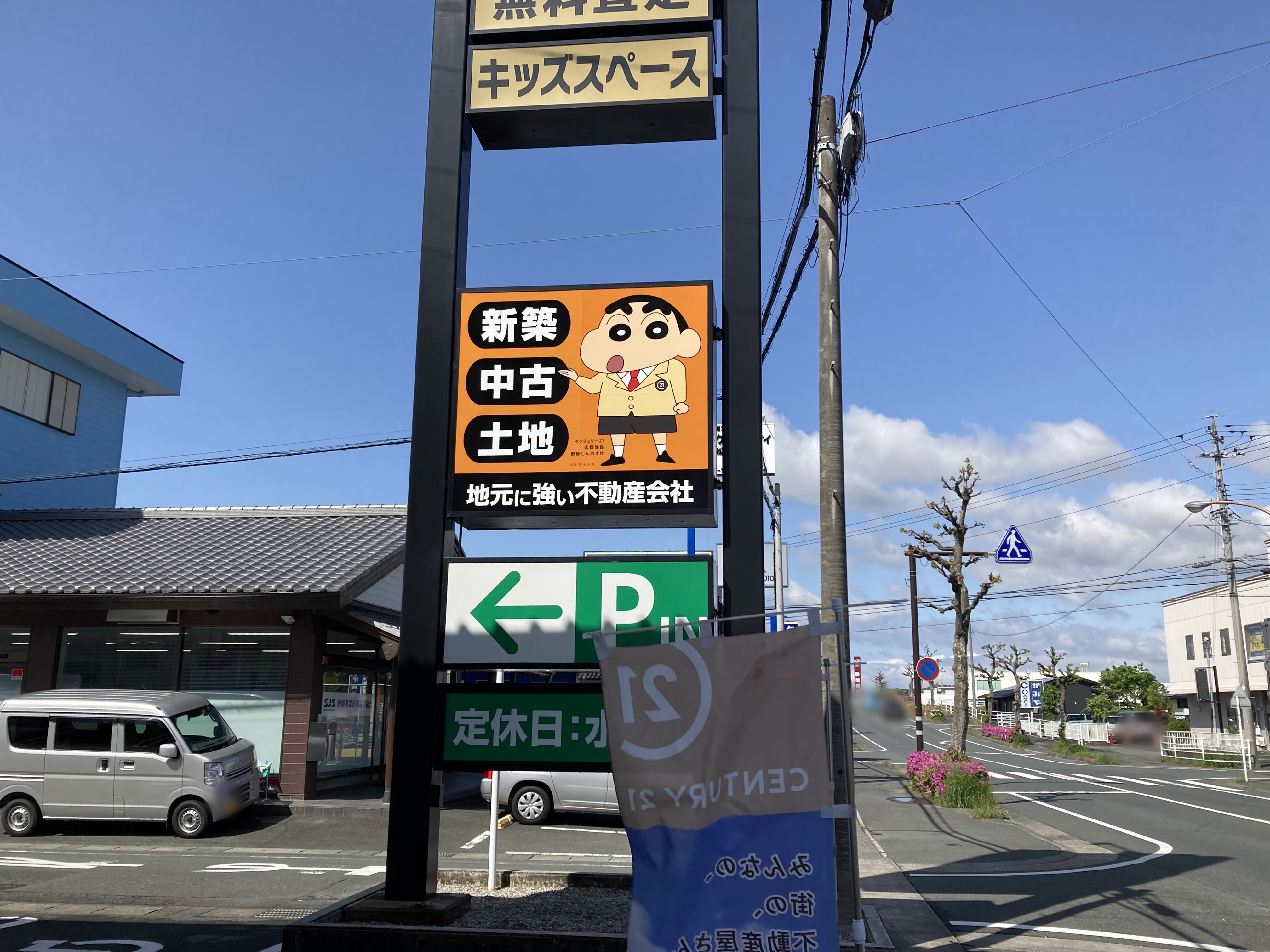 クレヨンしんちゃんとコラボ中!新築住宅、中古住宅ご購入はぜひセンチュリー21中央不動産へ!【更新】浜松店、外観をリニューアルしました!クレヨンしんちゃんが目印! | 浜松市・磐田市・静岡市・焼津市・藤枝市・豊川市・豊橋市の不動産はセンチュリー21中央不動産