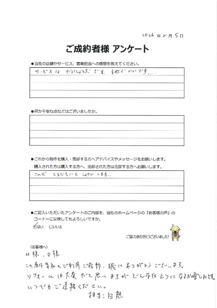 この度は当社のご利用・ご成約、誠にありがとうございます。