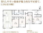 3LDK+ロフト+パントリーがある,平屋建て! LDKは19.75帖のゆとりの広さ!