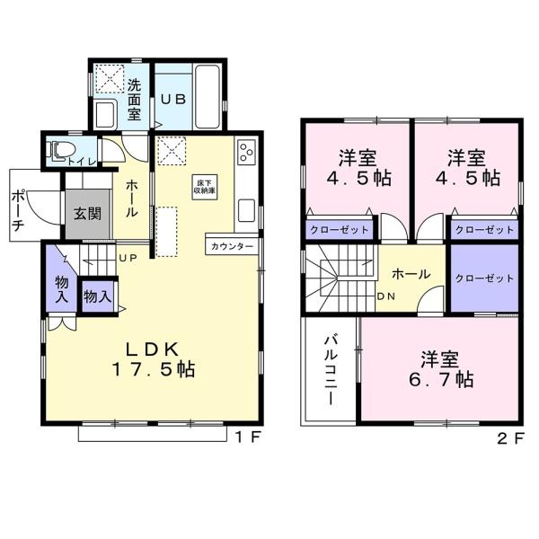 築年月 | 2016年1月築 | 間取り | 3LDK (LDK17.5/洋室6.7/洋室4.5/洋室4.5) | ||