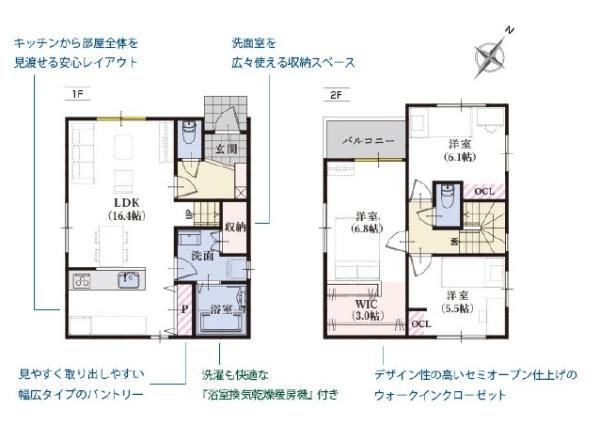 | 築年月 | 2026年3月築 | 間取り | 3SLDK (LDK16.4/洋室6.8/洋室6.1/洋室5.5/S3) | ||