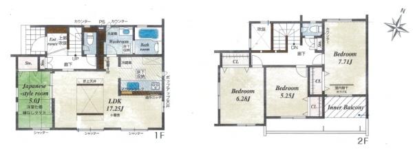 築年月 | 2025年12月築 | 間取り | 4LDK (LDK17.25/和室5/洋室7.71/洋室6.28/L5.25) | ||