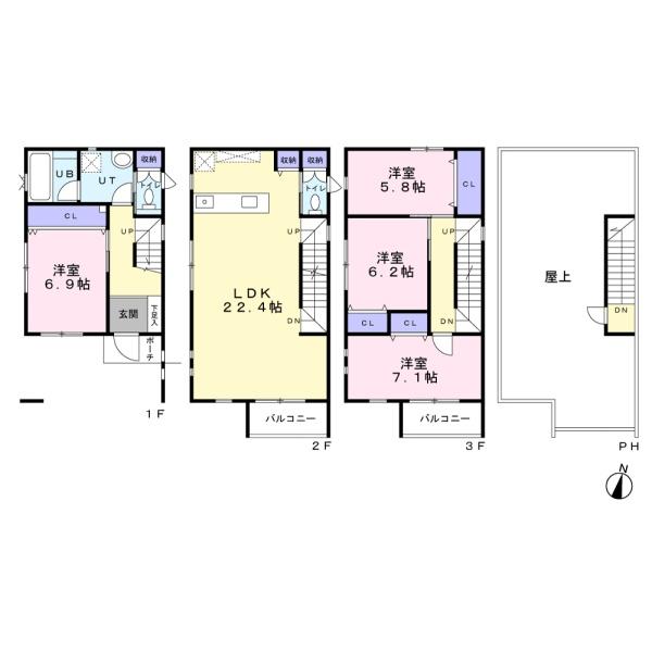 築年月 | 2007年2月築 | 間取り | 4LDK (洋室6.9/LDK22.4/洋室7.1/洋室6.2/洋室5.8) | ||