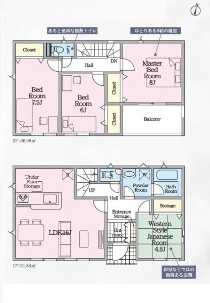 クローゼットが全室にある4LDK、2階建て!