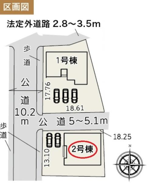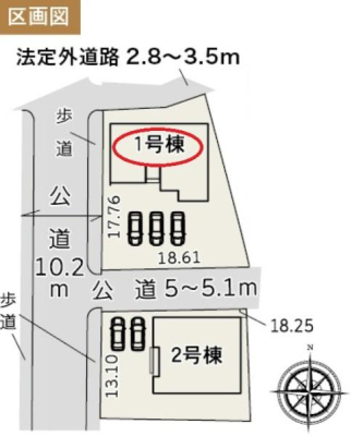 | 接道状況 | 接道: 西 公道 道路幅: 10m 接道: 北 公道 道路幅: 5m |