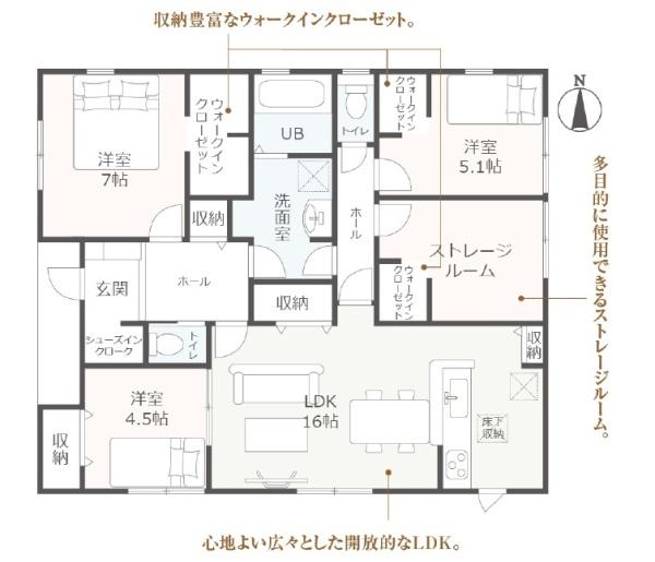 | 築年月 | 2026年1月築 | 間取り | 3LDK (LDK16/洋室7/洋室5.1/洋室4.5) | ||