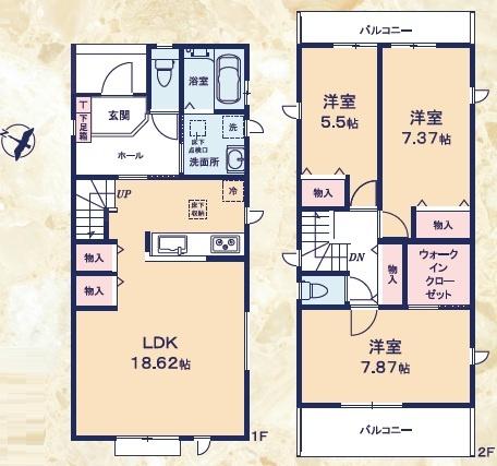 | 築年月 | 2025年10月築 | 間取り | 3LDK (LDK18.62/洋室7.87/洋室7.37/洋室5.5) | ||