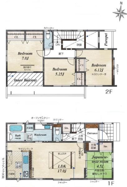 | 築年月 | 2026年3月築 | 間取り | 4LDK (LDK17/和室4.5/洋室7/洋室6.12/洋室5.25) | ||