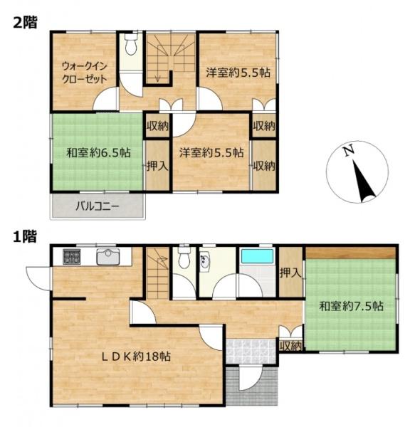 築年月 1988年8月築 間取り 4SLDK (LDK18/和室7.5/和室6.5/洋室5.5/洋室5.5)