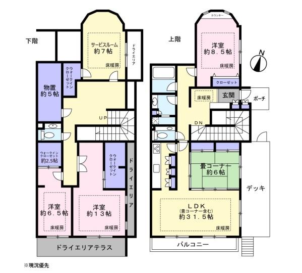間取り 4SLDK (LDK25.5/洋室8.5/和室6/洋室13/洋室6.5/S7/S5)