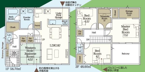 | 築年月 | 2026年2月築 | 間取り | 4SLDK (LDK18/和室4.5/洋室7.5/洋室6/洋室4.5/S3/S2.2) | ||