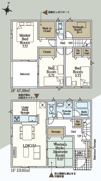 | 築年月 | 2026年2月築 | 間取り | 4SLDK (LDK15/和室5.2/洋室7.7/洋室5.7/洋室5.7/S3) | ||