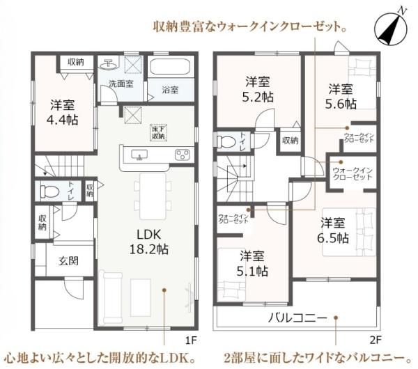| 築年月 | 2026年1月築 | 間取り | 5LDK (LDK18.2/洋室4.4/洋室6.5/洋室5.6/洋室5.2/洋室5.1) | ||