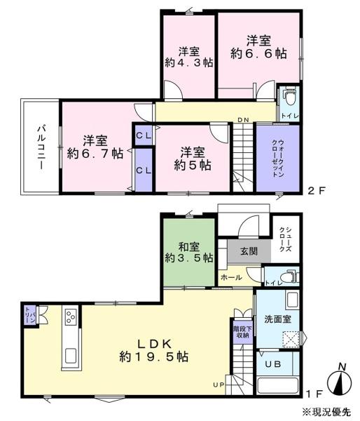 | 築年月 | 2026年6月築 | 間取り | 4LDK (LDK19.5/和室3.5/洋室6.7/洋室6.6/洋室5/洋室4.3) | ||