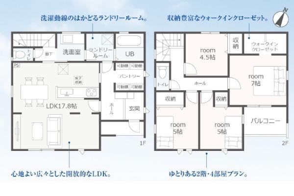 築年月 2026年5月築 間取り 4LDK (LDK17.8/洋室7/洋室5/洋室5/洋室4.5)