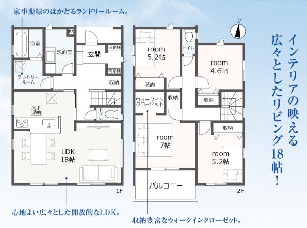 | 築年月 | 2026年4月築 | 間取り | 4LDK (LDK18/洋室7/洋室5.2/洋室5.2/洋室4.6) | ||