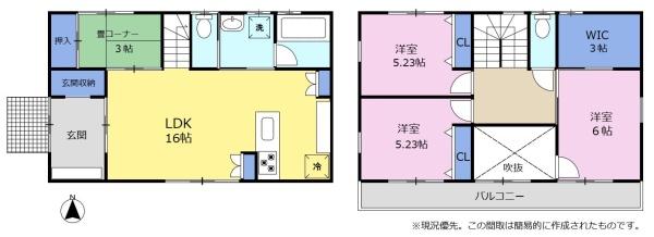 | 築年月 | 2018年4月築 | 間取り | 3SLDK (LDK16/S3/洋室5.2/洋室5.2/洋室6) | ||