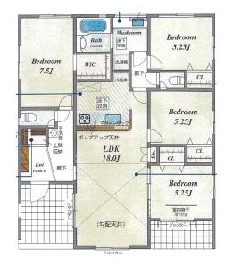 築年月 2026年4月築 間取り 4LDK (LDK18/洋室7.5/洋室5.25/洋室5.25/洋室5.25)