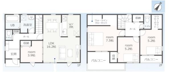 | 築年月 | 2026年5月築 | 間取り | 4LDK (LDK16.2/洋室3.9/洋室7.5/洋室5.2/洋室5.2) | ||