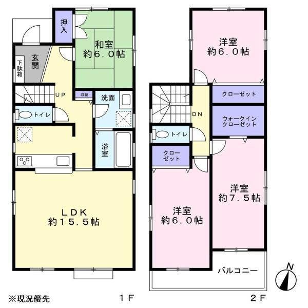 | 築年月 | 2012年1月築 | 間取り | 4LDK (LDK15.5/和室6/洋室6/洋室6/洋室7.5) | ||