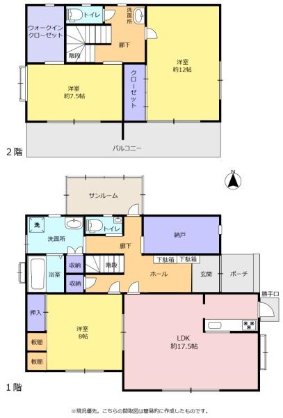 • 間取り図 3LDK+ウォークインクローゼット+納戸付きの2階建て!
