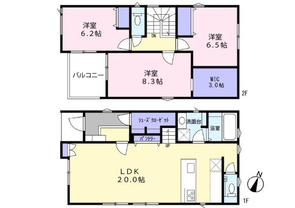 築年月 2024年1月築 間取り 3LDK (LDK20/洋室8.3/洋室6.5/洋室6.2)