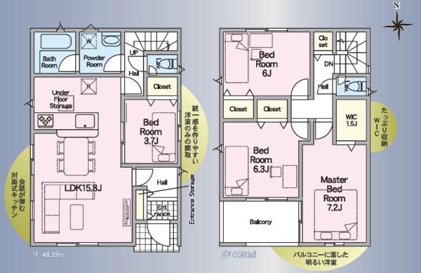| 築年月 | 2026年2月築 | 間取り | 4SLDK (洋室3.7/洋室6/洋室6.3/洋室7.2) | ||