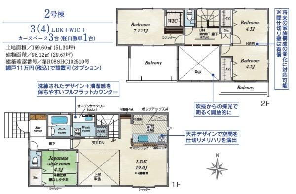 土地面積 169.6m² (51.3坪) 建物面積 98.12u