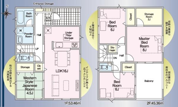 築年月 | 2026年1月築 | 間取り | 4LDK (LDK16/和室4.5/洋室8/洋室6/洋室6) | ||