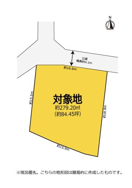| 現況/引渡し | 上物あり/相談 | 接道状況 | 接道: 北 16.6m 公道 道路幅: 4.1m |