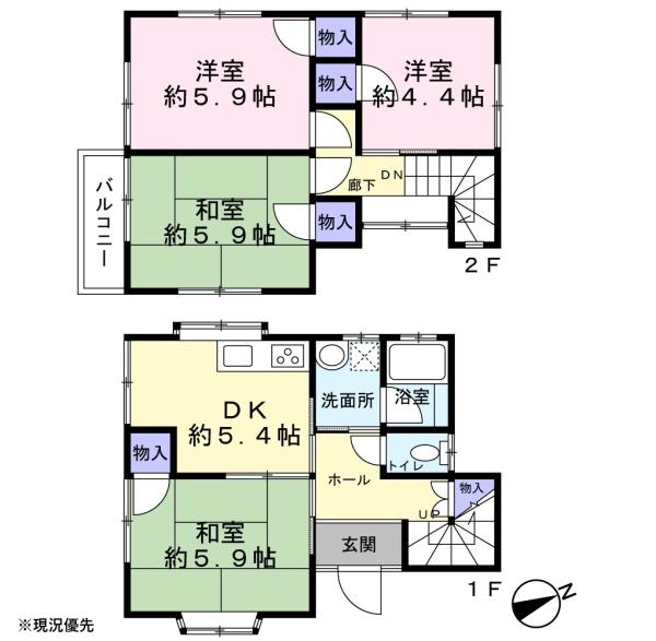 | 築年月 | 1988年2月築 | 間取り | 4DK (D5.4/和室5.9/洋室5.9/和室5.9/洋室4.4) | ||