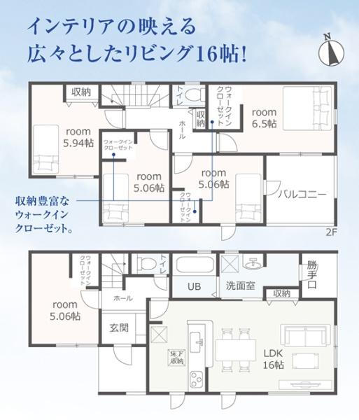| 築年月 | 2025年11月築 | 間取り | 5LDK (LDK16/洋室5.06/洋室6.5/洋室5.94/洋室5.06/洋室5.06) | ||