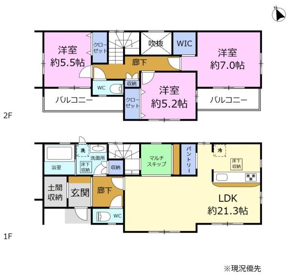 | 築年月 | 2025年7月築 | 間取り | 3LDK (LDK21.3/洋室7/洋室5.5/洋室5.2) | ||