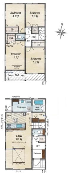 | 築年月 | 2026年2月築 | 間取り | 4LDK (LDK18.5/洋室6.5/洋室5.25/洋室5.25/洋室5.25) | ||