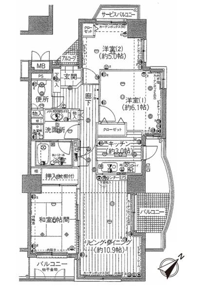 | 間取り | 3LDK (LDK10.9/洋室6.1/洋室5/和室6) | ||||