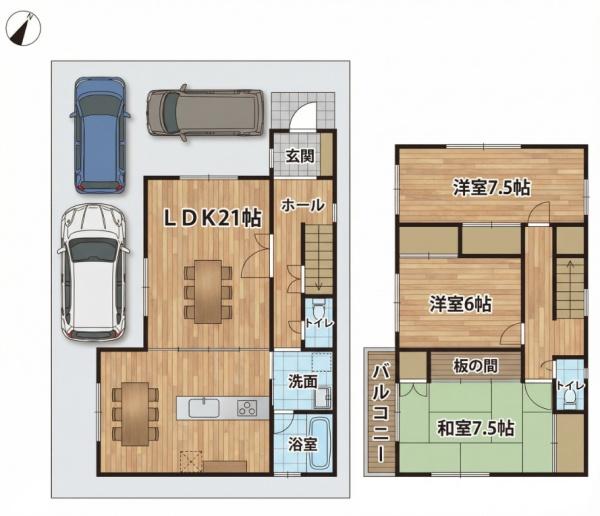| 築年月 | 2005年12月築 | 間取り | 3LDK (LDK21/和室7.5/洋室7.5/洋室6) | ||