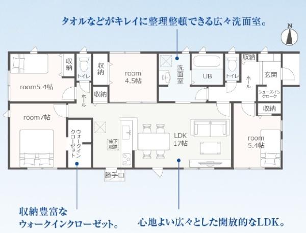 | 築年月 | 2026年3月築 | 間取り | 4LDK (LDK17/洋室7/洋室5.4/洋室5.4/洋室4.5) | ||