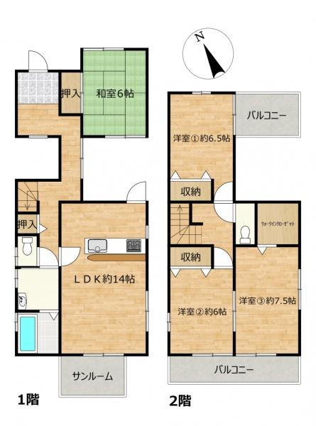 | 築年月 | 2002年6月築 | 間取り | 4LDK (LDK14/和室6/洋室7.5/洋室6.5/洋室6) | ||