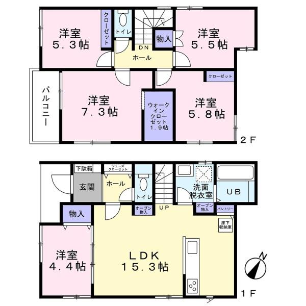 | 築年月 | 2025年8月築 | 間取り | 5LDK (LDK15.3/洋室4.4/洋室7.3/洋室5.8/洋室5.5/洋室5.3) | ||