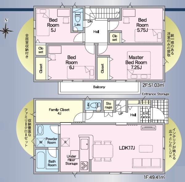 | 築年月 | 2026年4月築 | 間取り | 4LDK (LDK17/洋室7.25/洋室6/洋室5.75/洋室5) | ||