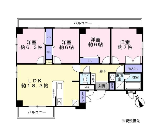 間取り 4LDK (LD14/K4.3/洋室6/洋室6/洋室6.3/洋室7)