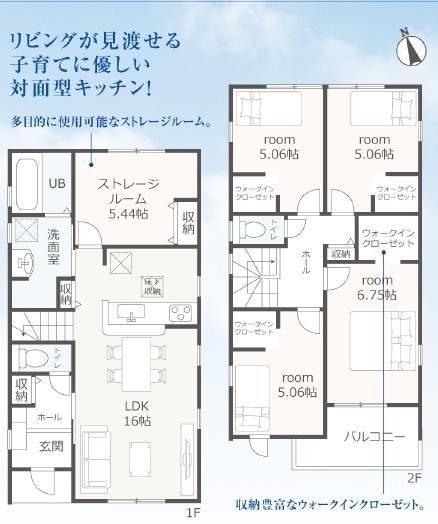 築年月 2026年4月築 間取り 4LDK (LDK16/S5.44/洋室6.75/洋室5.06/洋室5.06/洋室5.06)