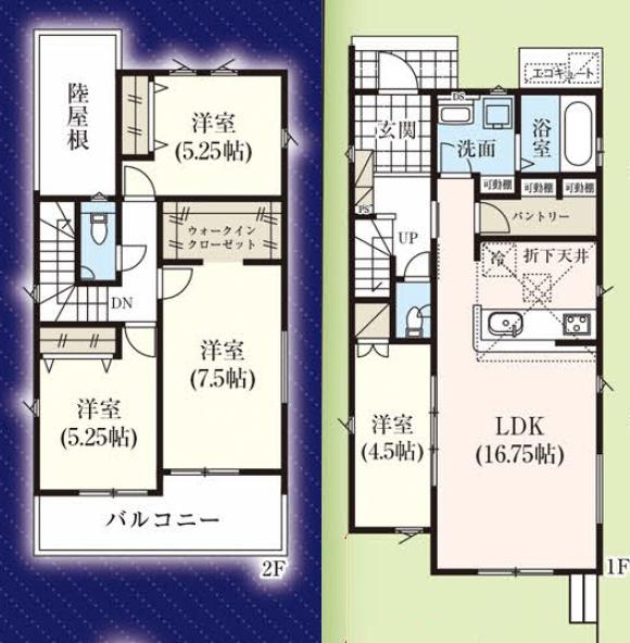 築年月 2026年2月築 間取り 4LDK (LDK16.75/洋室4.5/洋室7.5/洋室5.25/洋室5.25)