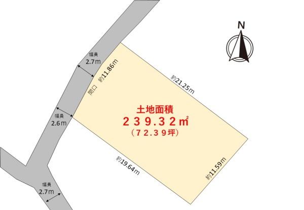 土地面積 239.32m² (72.39坪) 坪単価 3.87万円 /坪