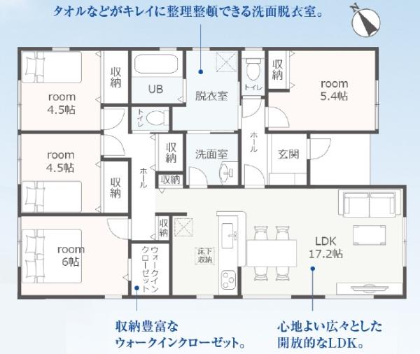 | 築年月 | 2026年4月築 | 間取り | 4LDK (LDK17.2/洋室6/洋室5.4/洋室4.5/洋室4.5) | ||