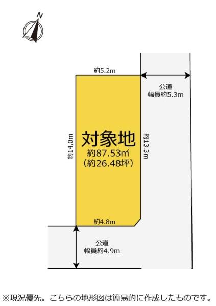 現況/引渡し 上物あり/相談 接道状況 接道: 北東 13m 公道 道路幅: 5.3m