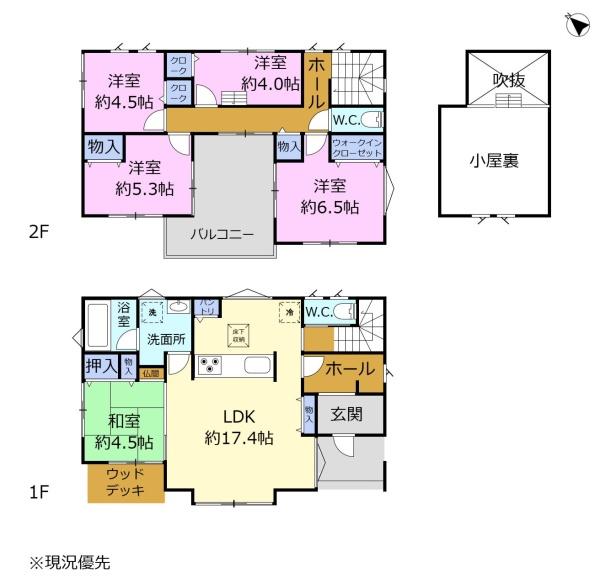 | 築年月 | 2020年8月築 | 間取り | 5LDK (LDK17.4/和室4.5/洋室6.5/洋室5.3/洋室4.5/洋室4) | ||
