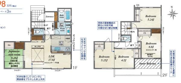 | 築年月 | 2026年5月築 | 間取り | 4LDK (LDK17/和室5.25/洋室9.75/洋室6/洋室5.24) | ||