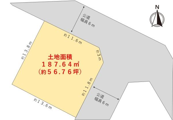土地面積 187.64m² (56.76坪) 坪単価 22.55万円 /坪