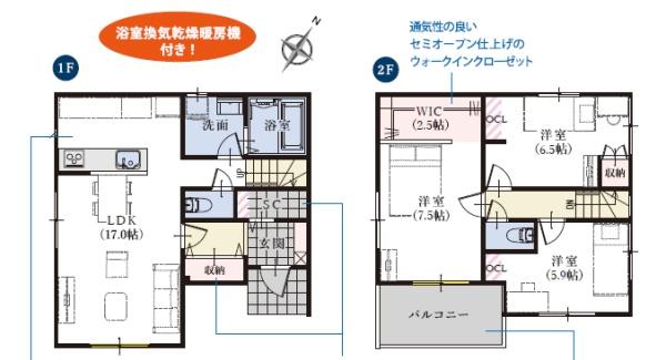 | 築年月 | 2026年3月築 | 間取り | 3LDK (LDK17/洋室7.5/洋室6.5/洋室5.9) | ||